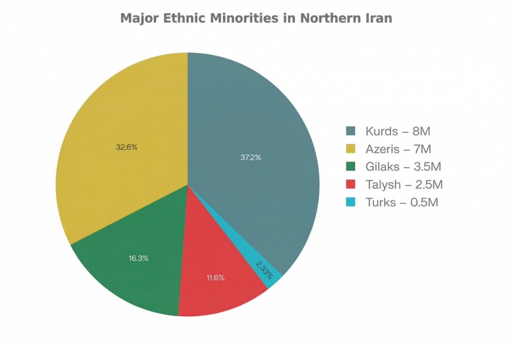 For example, look at the pages on Facebook and X that claim that 30–40 million Turks live in Iran and promote the establishment of a Turkish state in Iran. Most of those who like these ideas and write comments are from Turkey and Azerbaijan. The question arises: if there are 30–40 million Turks in Iran, why do the Turks who supposedly live in Iran not like these ideas? The answer is very simple: there are no more than 500,000 people in Iran who call themselves Turks. The real power in the north of Iran is the Kurds. Even the Gilaks, Talysh, and Mazandarans outnumber the Turks.